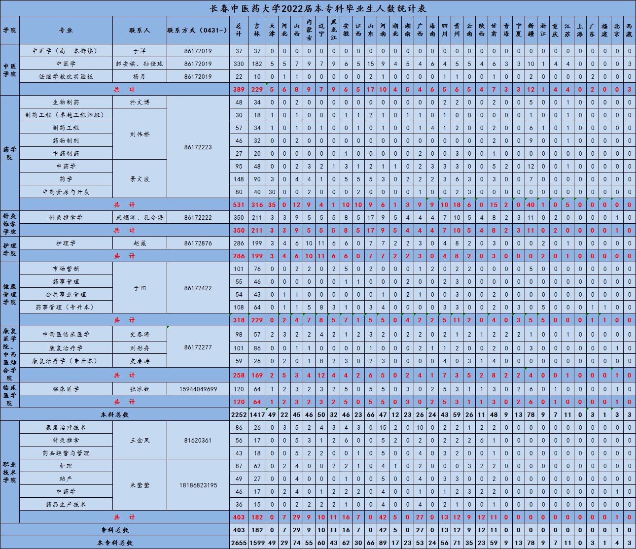 2022届本专科毕业生人数统计表