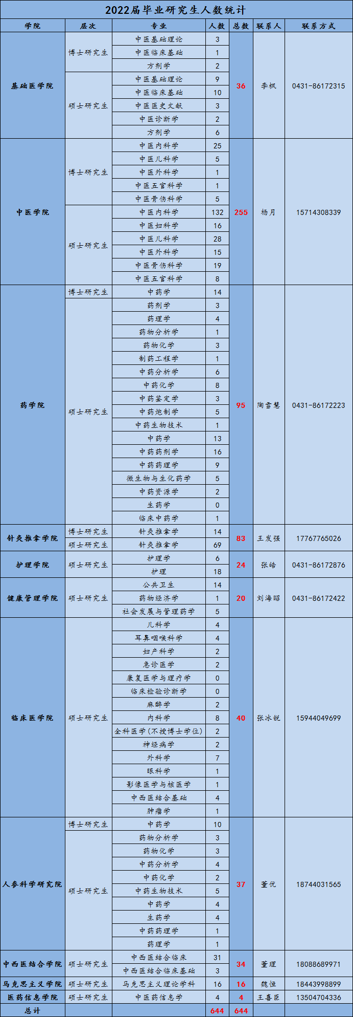 2022届研究生毕业生人数统计表